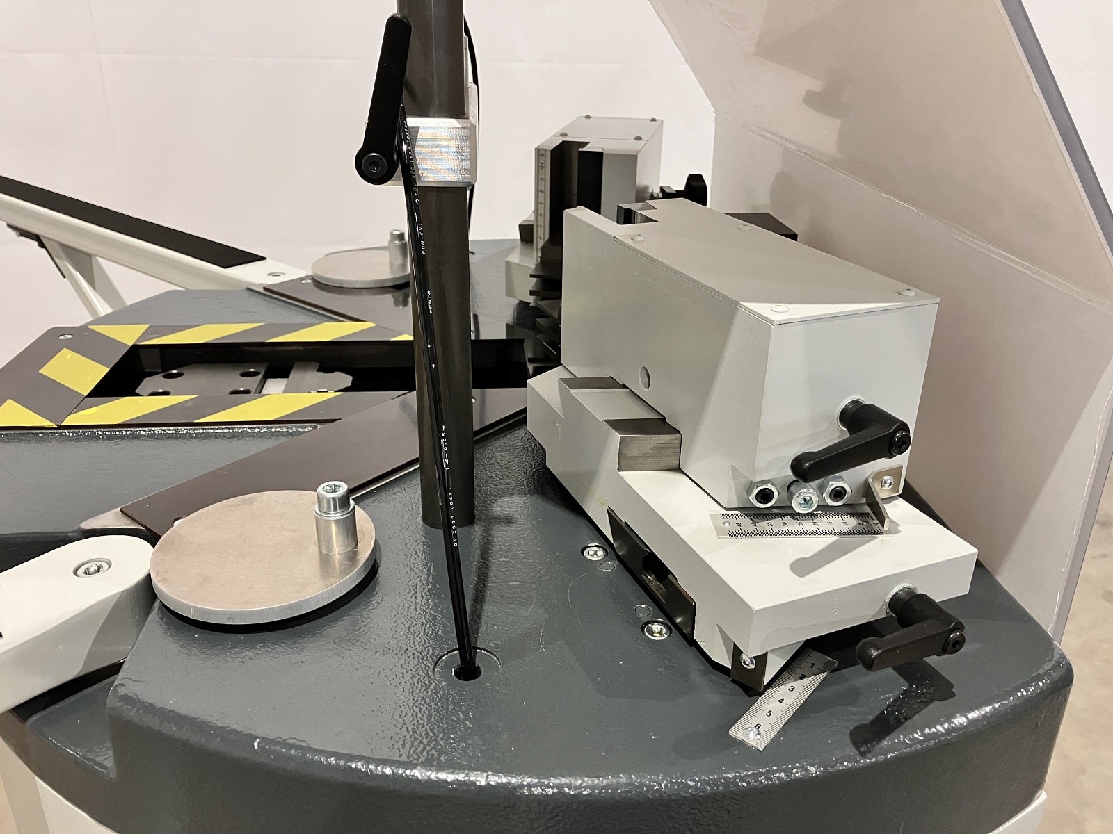 2 pneumatische Niederhaltezylinder zum Spannen der Profile