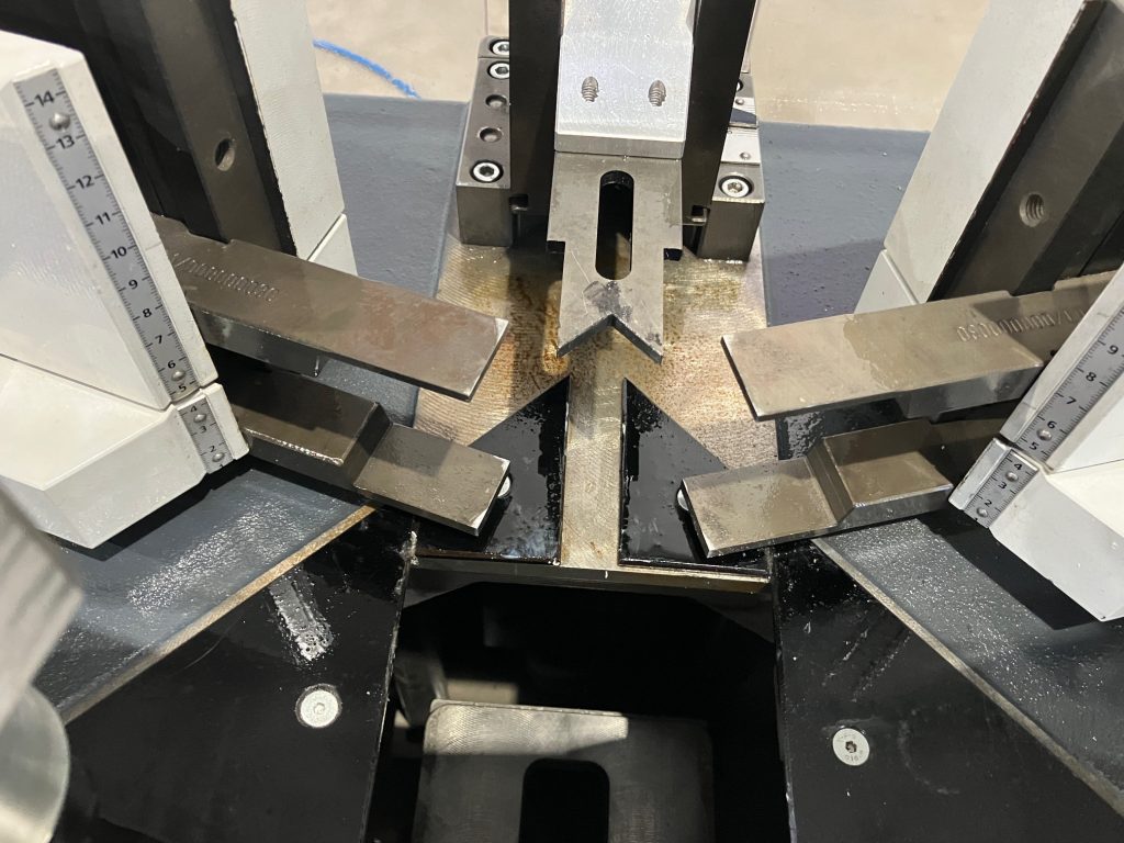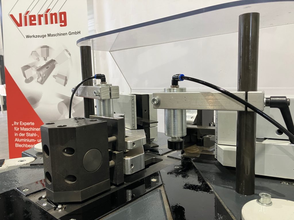 2 pneumatische Niederhaltezylinder zum Spannen der Profile