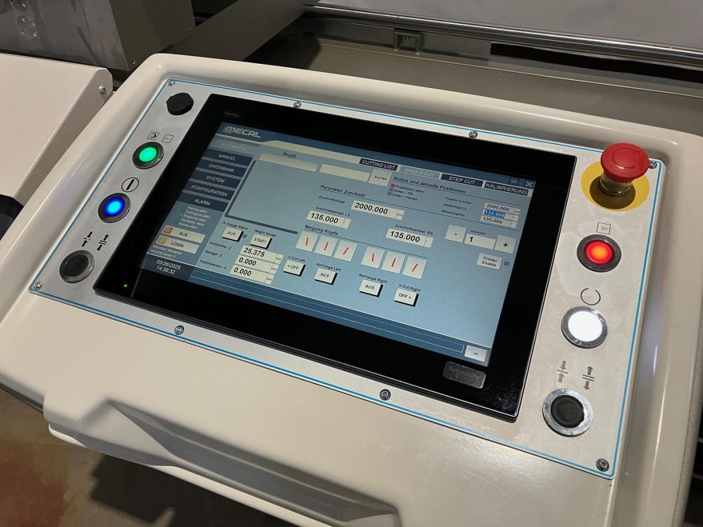 Längenpositionierung mit Berücksichtigung der Sägewinkel und Profilhöhe